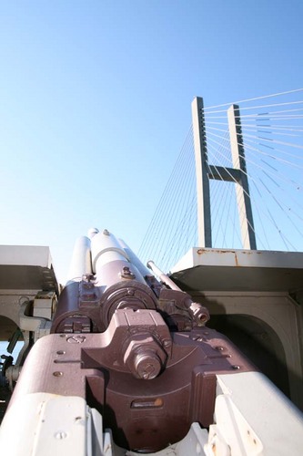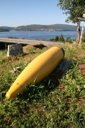 Tellevik kystfort. Denne artillerigranaten har ein diameter på 40,6 cm og representerer det største artilleriet som har vore brukt her til lands. Foto: Terje Opdal.