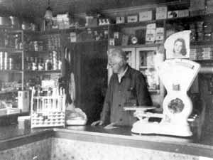 Erling Eikemo i butikken. Dette lokalet var i bruk frå 1937 til 1980. (Foto: Kjell Eikemo ©)