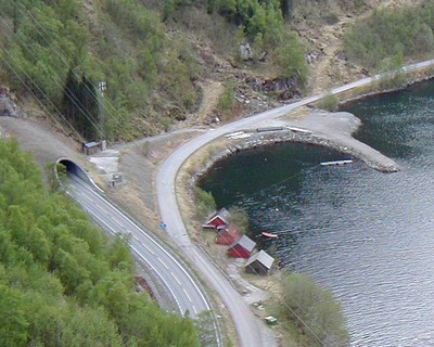 på E39 gjennom Masfjorden. Tunnelen er 4 110 meter lang og vart