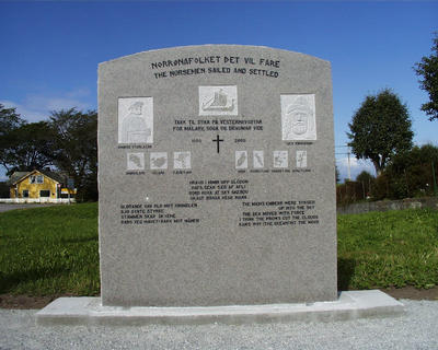 Det er reist fleire bautasteiner knytt til norsk-amerikansk historie og til den norske innsatsen i 2. verdskrigen. Bakgrunn