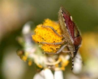i breitegefamilien Pentatomidae. Den er vanleg å sjå på