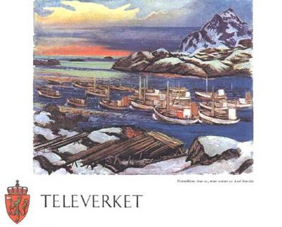 "Fiskeflåten drar ut". Etter maleri av Axel Revold.