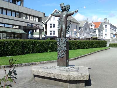 Då Landmannstorget blei innvia i 1980 kunne ordførar Olle Johan Eriksen samtidig takke for skulpturen "Gledesspredeen" av Fritz Røed som var ei gåve frå Bergen Bank.