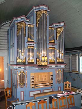 rundt nesten heile kyrkjerommet. Fine rosemalinger (rokokko) på galleri