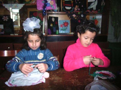 skolefritidsordning i Oguz, der barn får opplæring i håndarbeid.