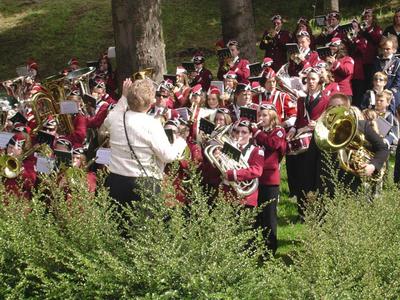 Brekke Skulemusikkorps i historiske omgjevnader. Foto:Liv