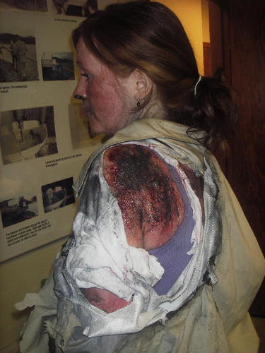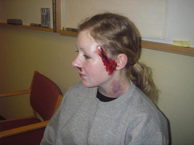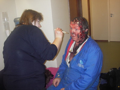 Skjult skade må også sminkast. Foto: Turid