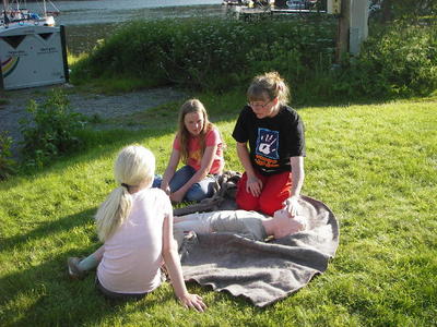 Ingrid viser hlr på junior. Foto: Turid Westervik.