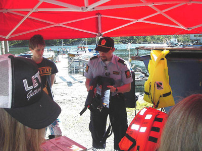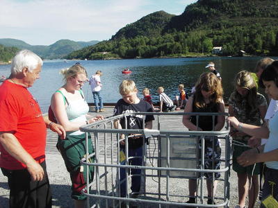 med bruk av redningsvestar på sjøen, dei fikk prøve
