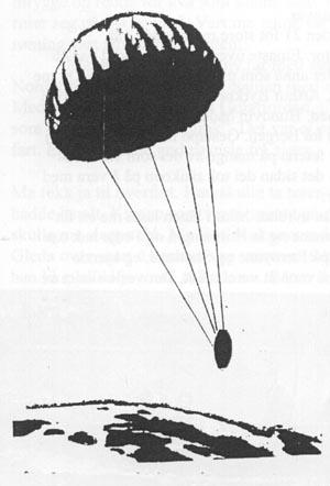 dei at ein fallskjerm kom dalande. Flygaren hadde kome seg ut, og han var