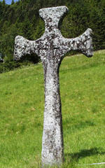 Den keltiske krossen ved kyrkjegardsporten er frå