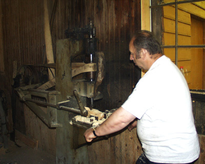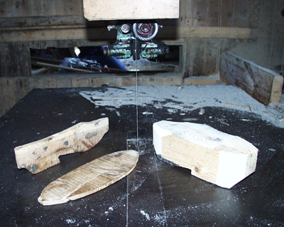 kappa dei opp til treskoemner. Denne saga er å finne i fabrikken
