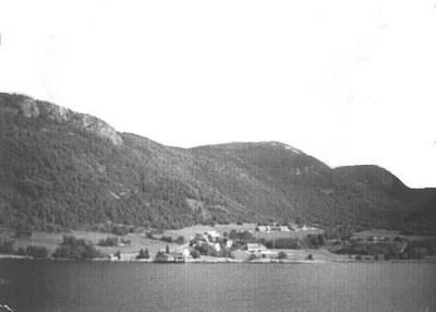 Kaia på Ytre Oppedal kring 1950. Ytst ligg "Bjørghild"